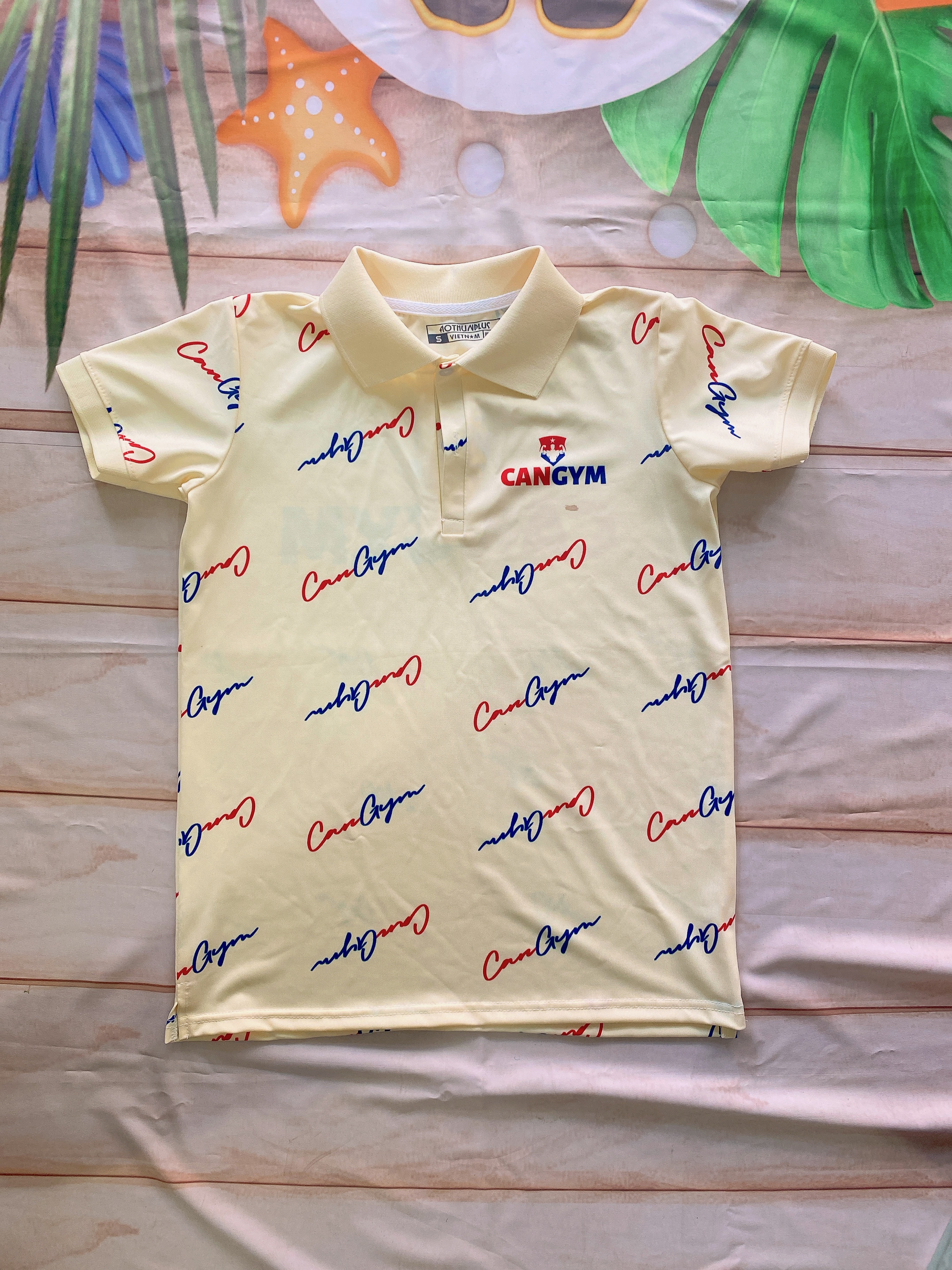 Áo polo màu vàng cúc, cổ màu thiên thanh